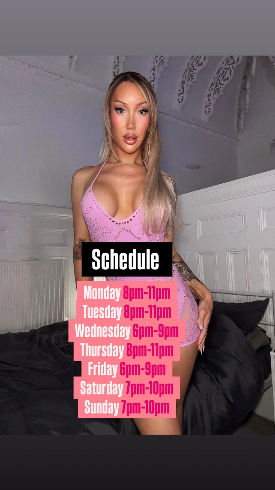 My schedule for this week… Thursday 7pm-9pm Friday 7pm-9pm Saturday 12am-2am Sunday 6pm- 9pm Come and find me 💋 Let’s have some naughty fun together 🫦